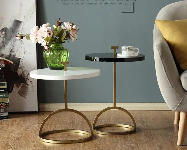 Round coffee table iron sofa small side table hotel bedside table black gold end table coffee tea tableBuy Now On Aliexpress