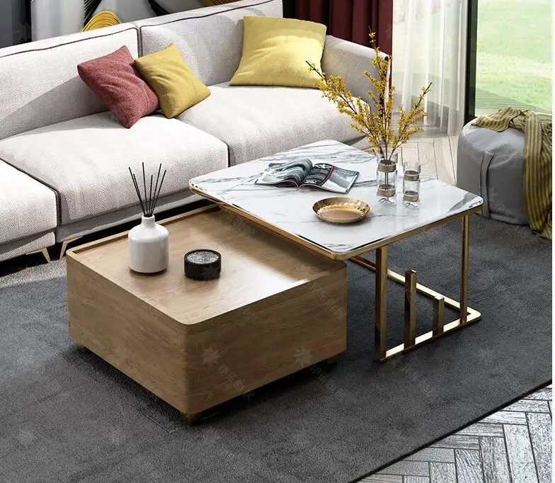 Nordic style marble coffee table rectangular modern minimalist living room small apartment creative home double iron tea tableBuy Now On Aliexpress