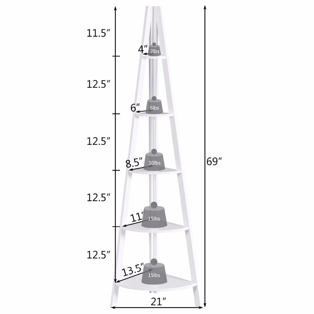 | Giantex 5 Tier Corner Ladder Shelf Floor Stand Shelves Bookshelf Display Bookcase Home Furniture HW60327WH |