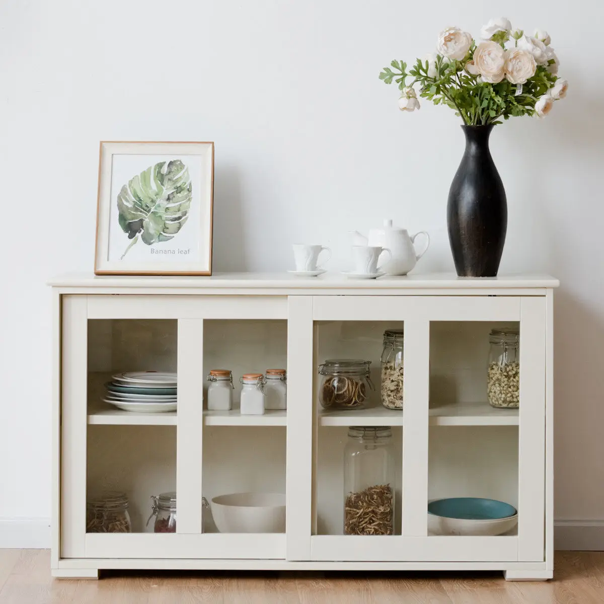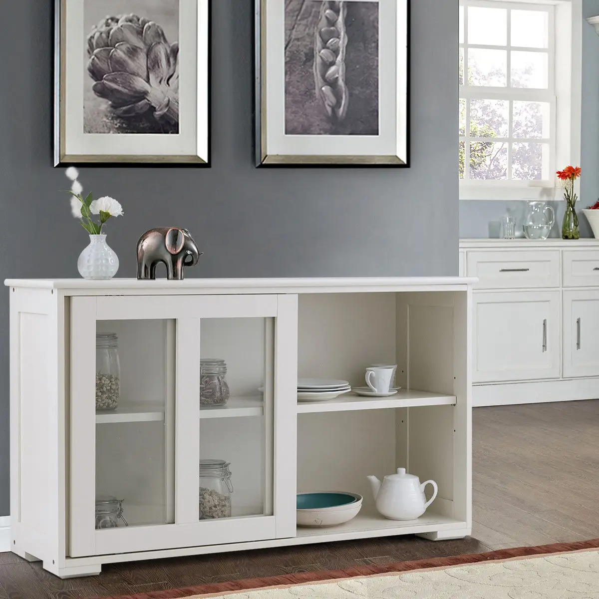 | Costway Storage Cabinet Sideboard Buffet Cupboard Glass Sliding Door Pantry Kitchen New |