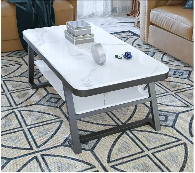 | Nordic style marble coffee table rectangular modern minimalist living room small apartment creative home double iron tea table |